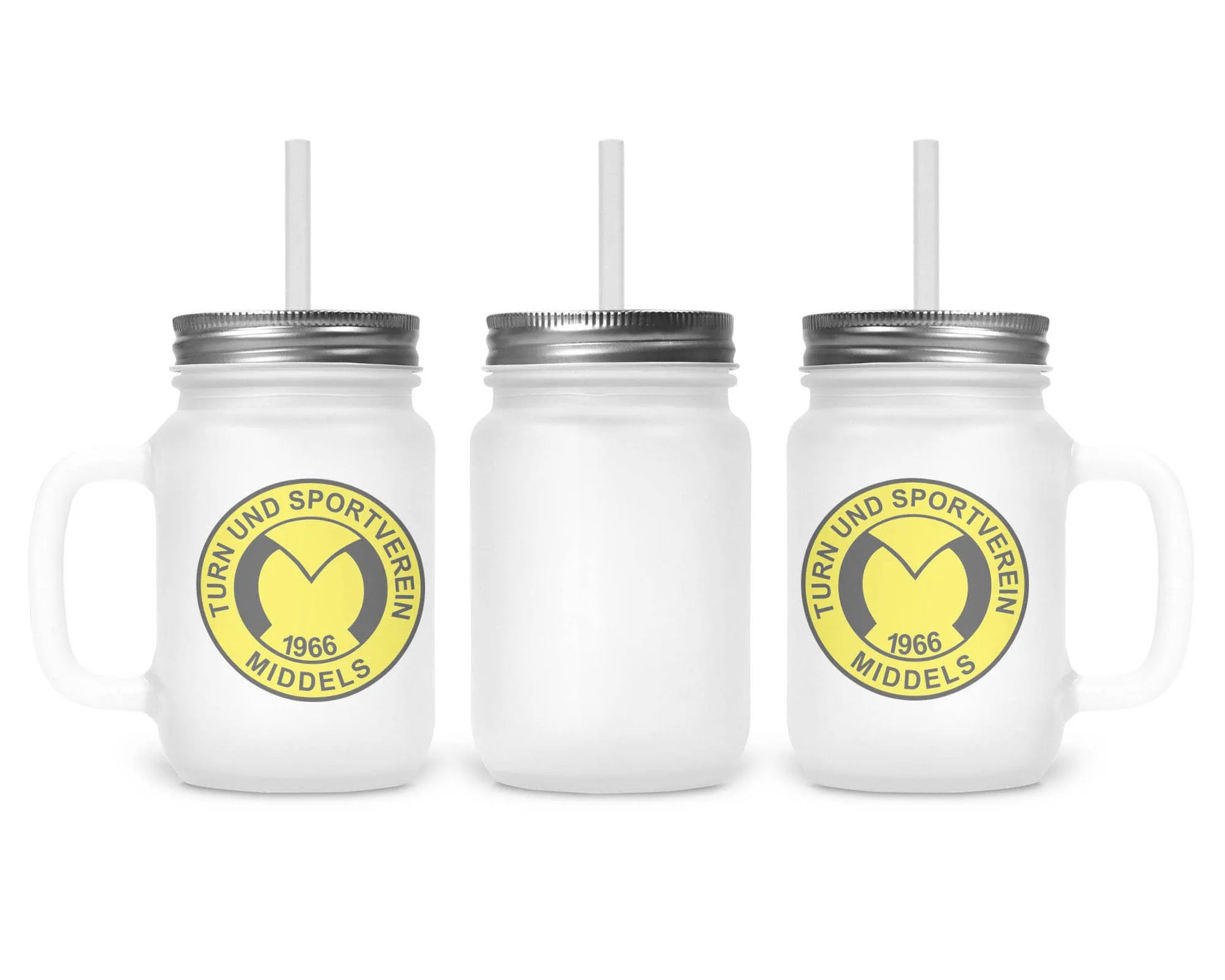 Genieße kühle Drinks mit Stil – unser TuS Middels – Mein Verein! Edition Henkelglas macht jede Erfrischung zum Statement. Ob Eiskaffee, Smoothie oder Limonade: Dank praktischem Henkel und wiederverwendbarem Trinkhalm bleibst du jederzeit flexibel und zeigst deinen Vereinsstolz.