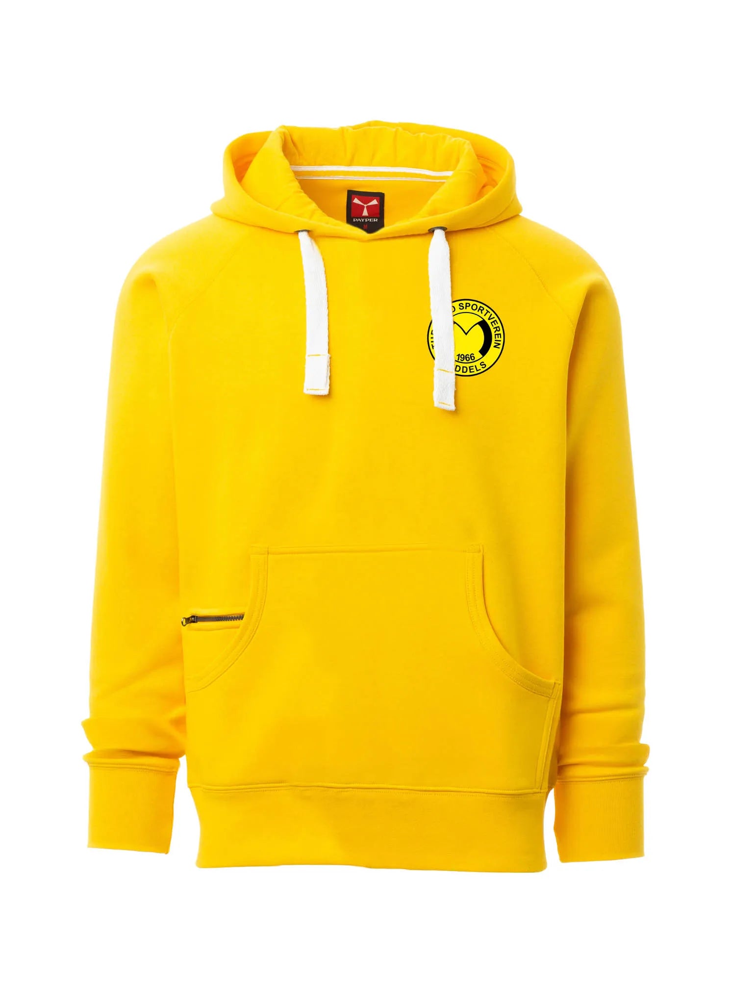 Der TuS Middels Hoodie – Mein Verein! Edition kombiniert das kraftvolle Vereinsmotto mit komfortablen Details: Der große Gelb-Schwarz-Splash-Print auf dem Rücken und der dezente Brust-Print mit Vereinslogo und „Mein Verein!“ setzen ein klares Statement. Gleichzeitig bieten Raglanärmel, die angeraute Innenseite und ein innenliegendes Reißverschlusstäschchen optimalen Tragekomfort und praktische Funktion.