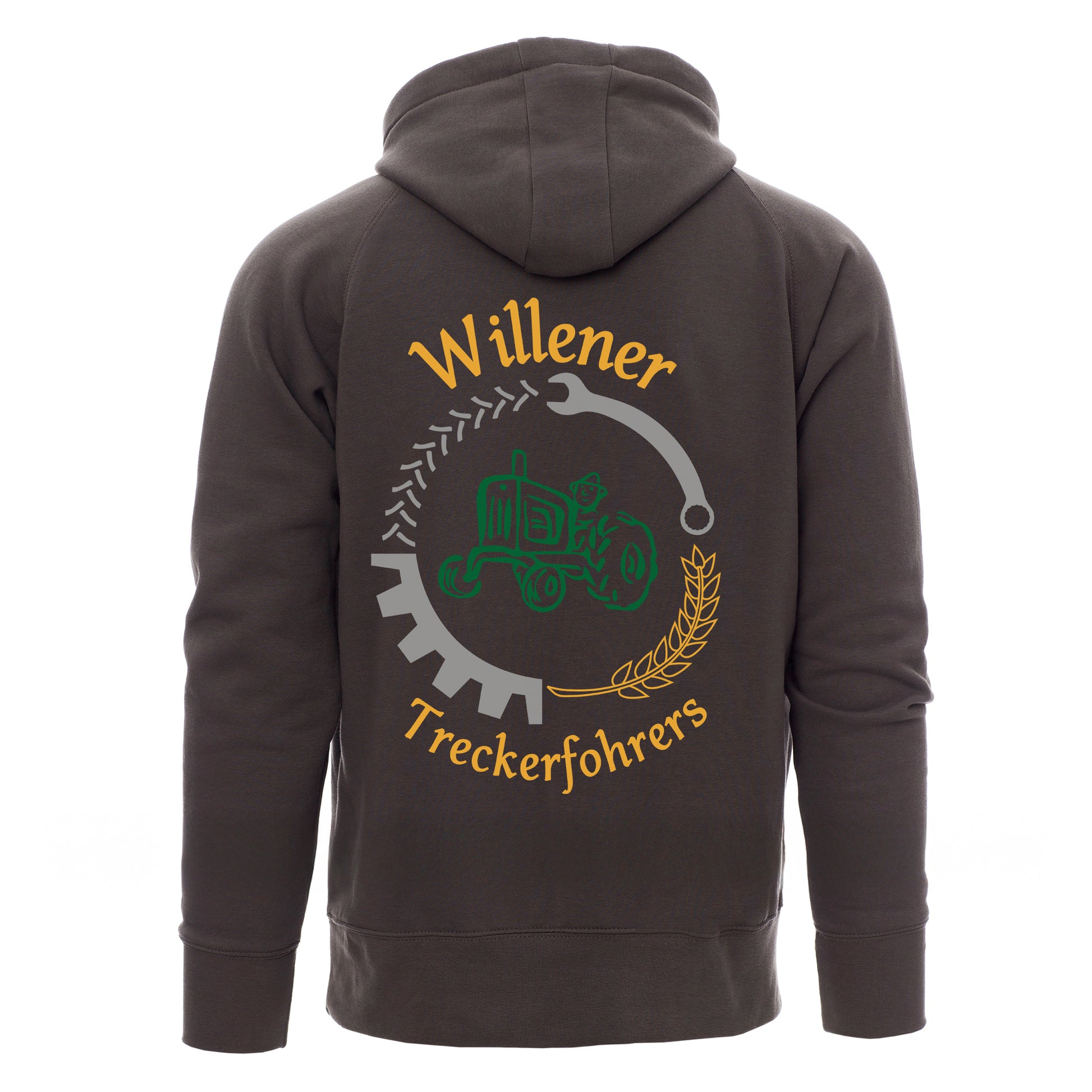 Robust, gemütlich und mit Statement: Dieser Hoodie kommt mit großem Rückenmotiv „Willener Treckerfohrers“ und deinem Wunschnamen auf der Brust (inklusive). Genau richtig für Ausfahrten, Schrauberabende oder das nächste Treffen.