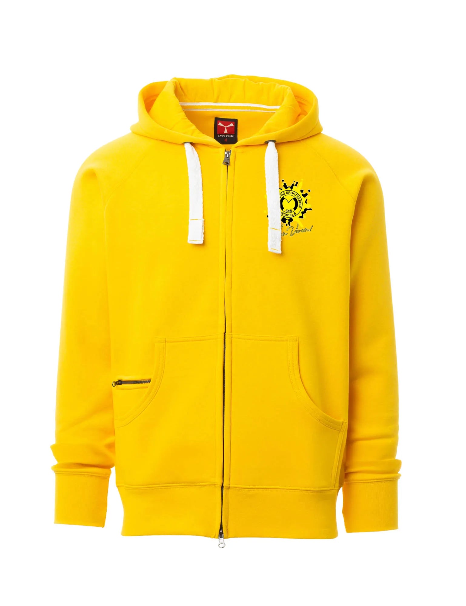 Die TuS Middels Sweatjacke – Splash Edition kombiniert sportives Design mit funktionalen Details: Der dynamische Gelb-Schwarz-Splash-Print samt Slogan „Mein Verein!“ auf dem Rücken macht dich zum Blickfang, während das dezente Vereinslogo vorne deine Zugehörigkeit stilvoll kommuniziert.